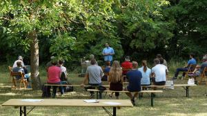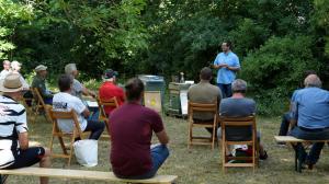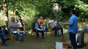 Am Samstag, dem 27. Juni 2020 hatten die Teilnehmer des Jungimkerkurses endlich Gelegenheit, sich nach Lockerung der Corona-Beschränkungen im Bienengarten des Imkervereins endlich einmal zu einer Veranstaltung zu treffen. Imkermeister Hans Rosen demonstrierte die am Bienenvolk in den Sommermonaten durchzuführenden Arbeiten: Das Auffüttern der Bienenvölker, die verschiedenen Möglichkeiten der Varroa-Behandlung mit Ameisensäure, sowie die weiteren Vorbereitungen der Völker auf den Winter.
